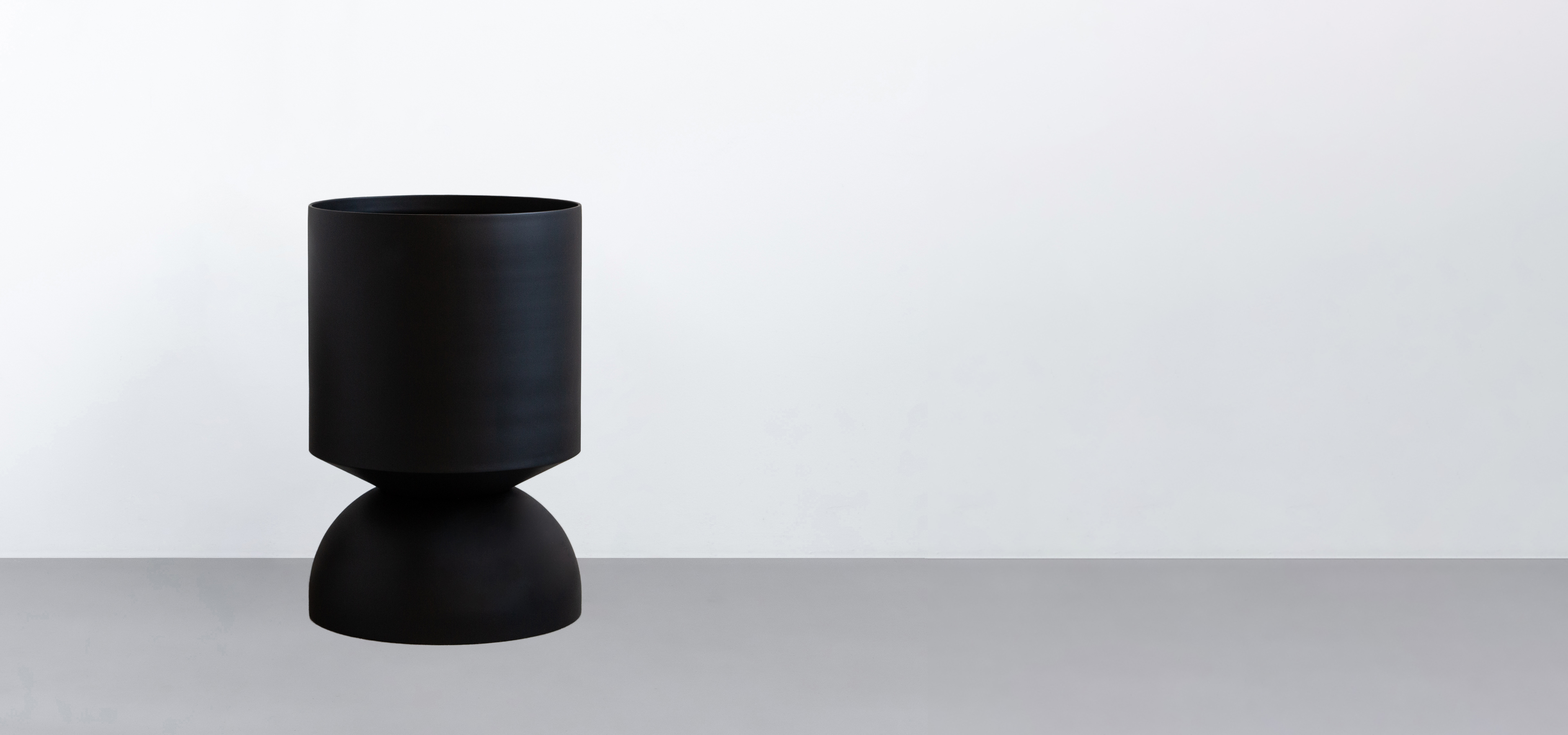 ADA planter was made in a metal spinning process out of aluminum. They come in four types, all can be filled from both sides, allowing for endless combinations from cactus as well as palm trees.